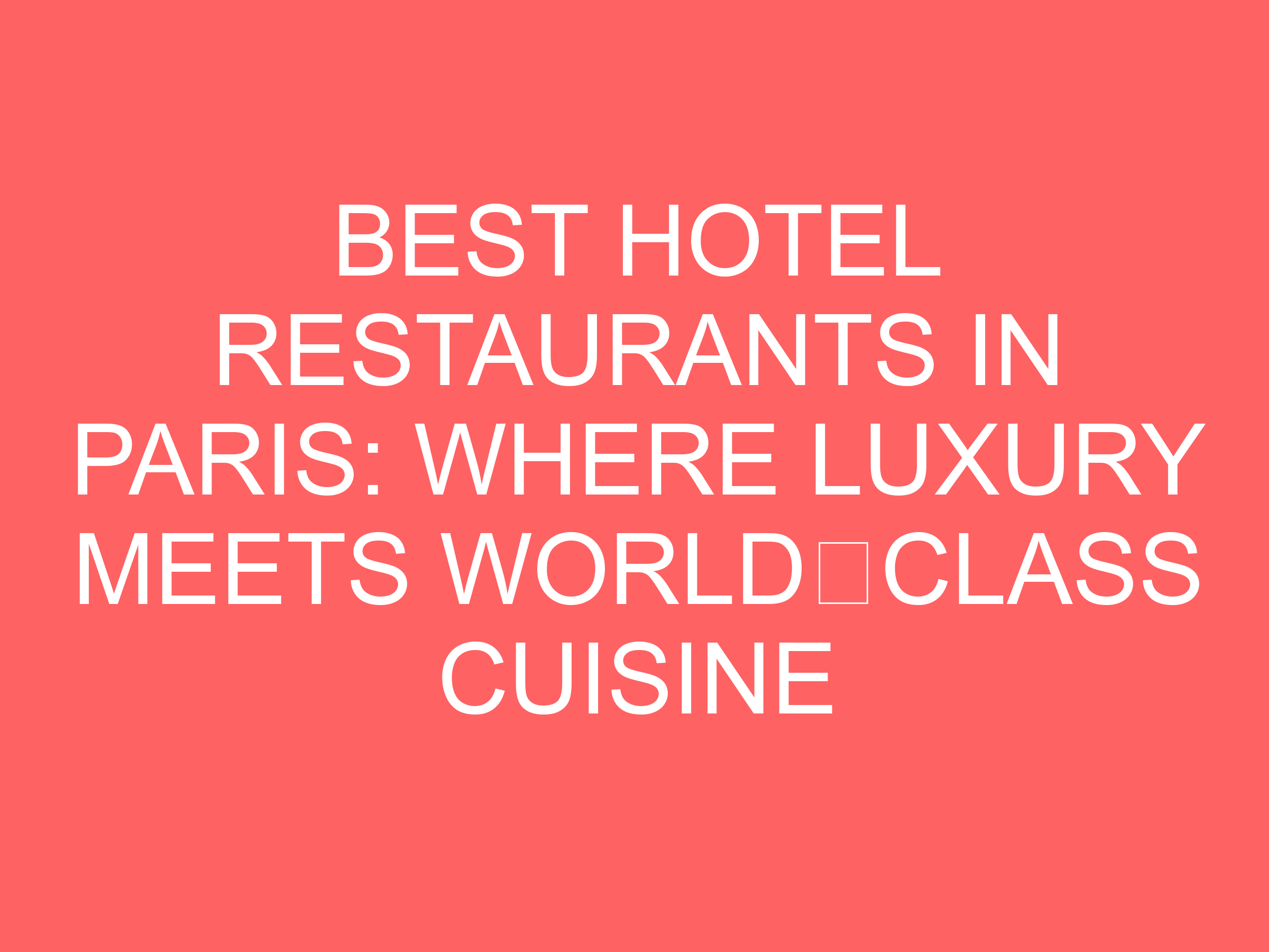 Best Hotel Restaurants in Paris: Where Luxury Meets World‑Class Cuisine
